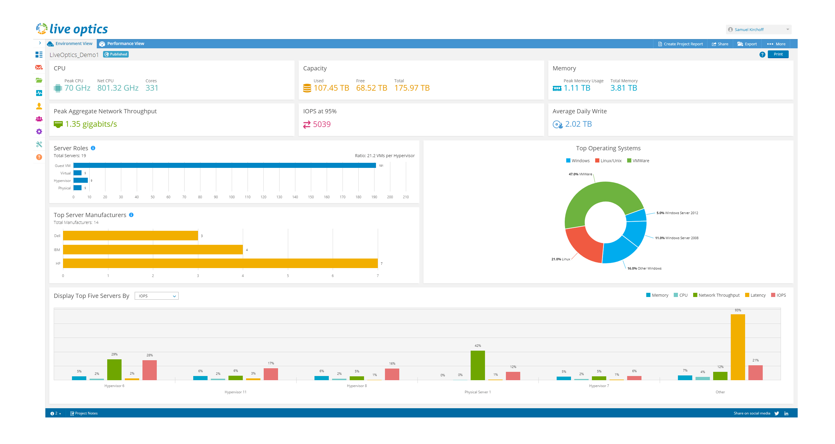 Live Optics 的工作負(fù)載特征分析具有供應(yīng)商、硬件和平臺(tái)中立性。它還收集和分析來(lái)自業(yè)內(nèi)主流操作系統(tǒng)、硬件和虛擬環(huán)境的數(shù)據(jù)。