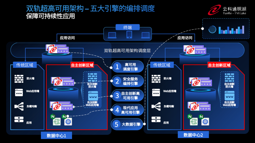 為實(shí)現(xiàn)雙軌超高可用架構(gòu)信創(chuàng)區(qū)和非信創(chuàng)區(qū)的跨域協(xié)同,實(shí)現(xiàn)信創(chuàng)區(qū)域和非信創(chuàng)區(qū)域的平滑過渡,leyu.樂魚通過五大引擎實(shí)現(xiàn)多層次的應(yīng)用可持續(xù)性。